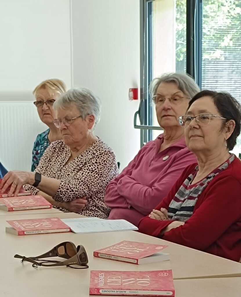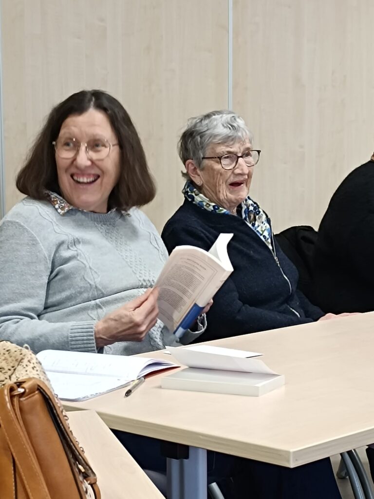 Merci à Marie Houllière, parente d’Emmanuel Villin qui a permis cette rencontre. Après le goûter toujours apprécié nous nous souhaitons un joyeux Noël, de belles fêtes de fin d’année et nous donnons rendez-vous pour le mardi 14 janvier 2025 avec « L’île haute » de Valentine Goby.