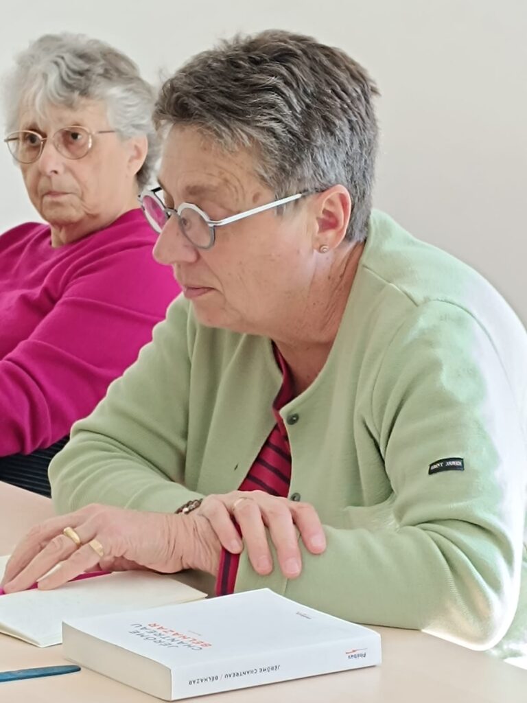 Une fois par mois nous nous retrouvons à 14h15 à la maison Saint Julien autour de Nicole Boulay qui anime ce café littéraire.