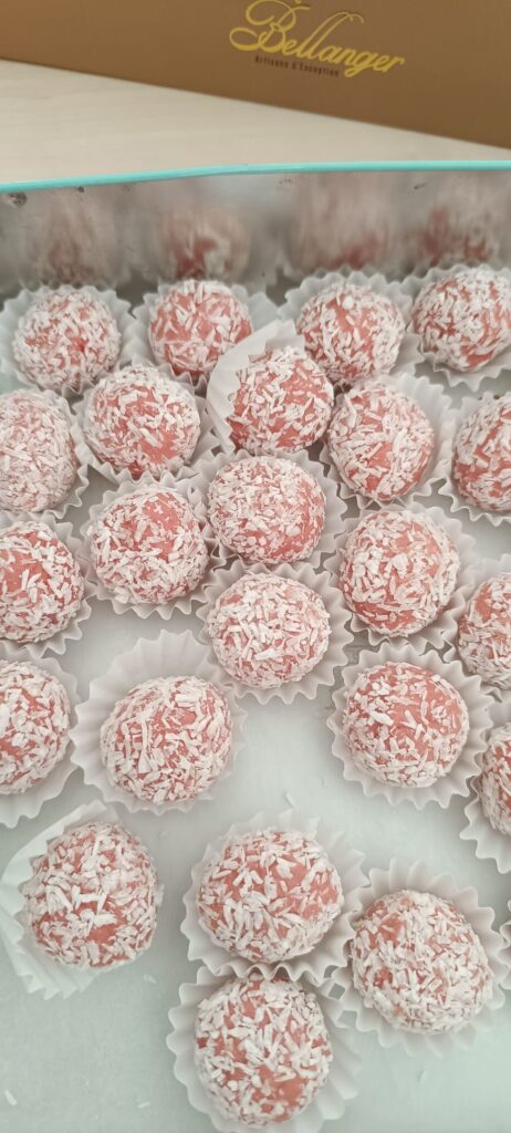 Comme à son habitude, Nicole nous a concocté un très bon goûter composé de marbrés au chocolat et truffes de biscuits de Reims à la noix de coco.